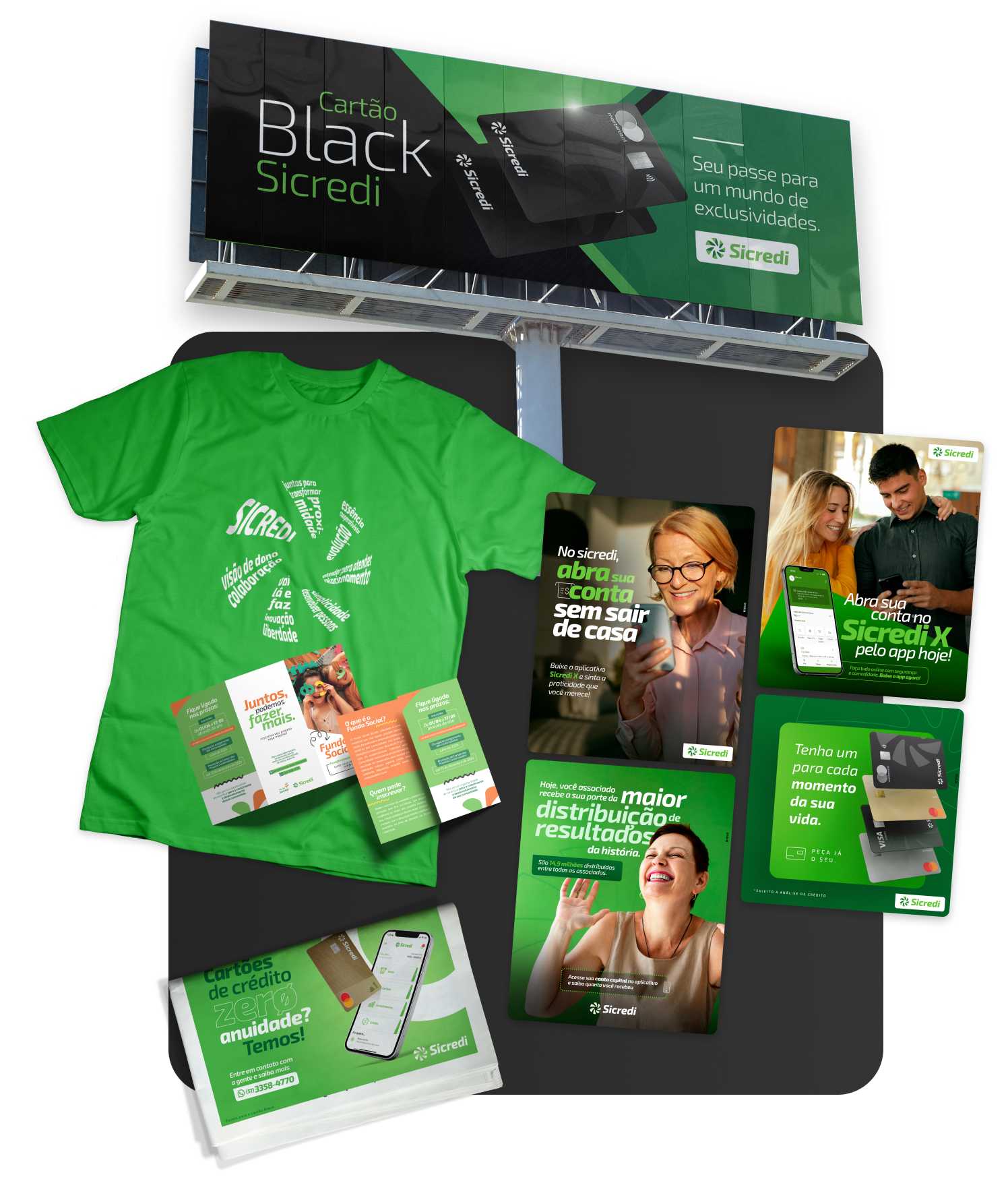 Cada cooperativa Sicredi possui características únicas que merecem ser refletidas em sua identidade visual e nas campanhas que representam seus valores. Trabalhamos na criação de marcas exclusivas e materiais personalizados que conectam a cooperativa ao público de forma genuína e impactante.