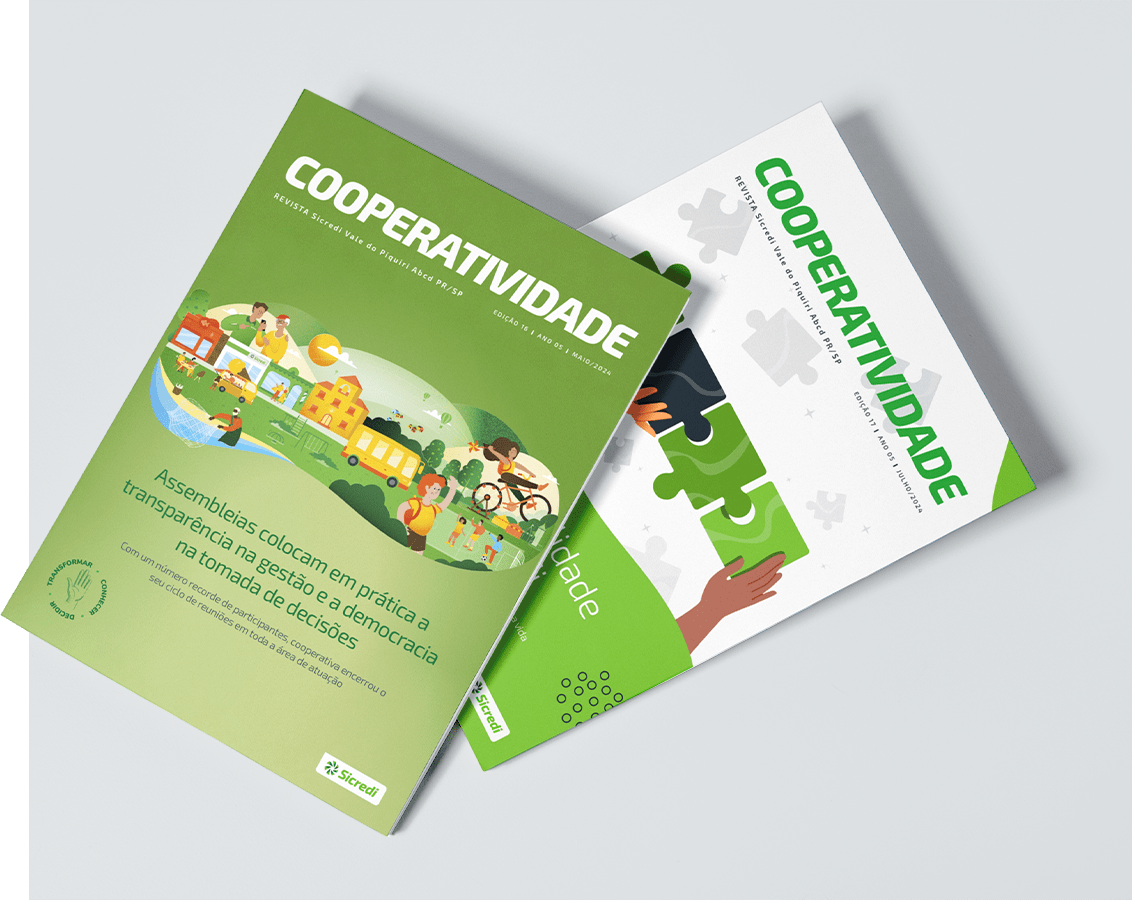 • Revista Cooperatividade: publicações trimestrais de accountability que conectam os associados aos resultados financeiros e iniciativas da cooperativa. Este material fortalece a transparência e posiciona a Sicredi Vale do Piquiri Abcd como uma referência em governança.